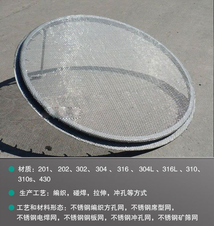 不銹鋼篩網(wǎng)常用的材質(zhì)有:201、 202、302、 304 、 316 、 304L 、316L 、310、310s、430等?!?/p>