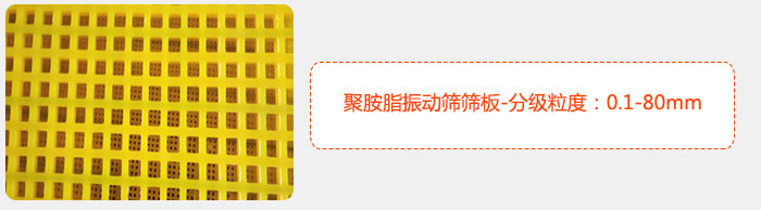 聚胺脂振動(dòng)篩篩板是一種高分子彈性振動(dòng)篩篩板,它具有優(yōu)異的耐磨、耐油、耐水解、耐菌、耐老化性能。該振動(dòng)篩篩板不僅可大幅度減輕設(shè)備重量,降低設(shè)備成本,延長(zhǎng)使用壽命,而且降低噪音,廣泛應(yīng)用于礦山、冶金、煤碳、焦炭、洗煤、石油、化工等行業(yè)振動(dòng)篩洗選分級(jí)作業(yè)。聚胺脂振動(dòng)篩篩板孔的形狀有:梳齒、方孔、長(zhǎng)孔、圓孔及條縫式等。物料的分級(jí)粒度:0.1-80mm